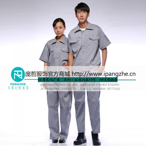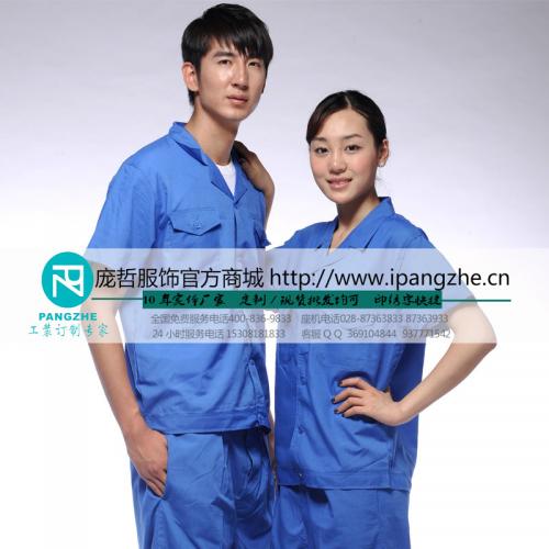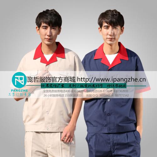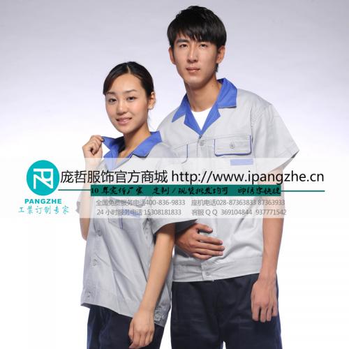 庞哲夏季短袖工作服 男 套装 工装 汽修劳保服吸汗订做工装定制