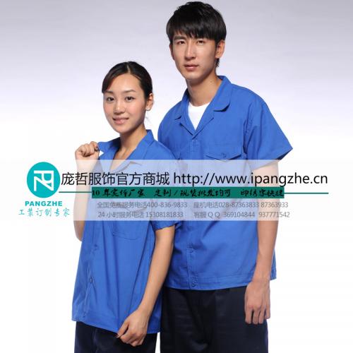 庞哲夏季短袖工作服套装男女工厂制服车间4S汽修服半袖劳保服包邮