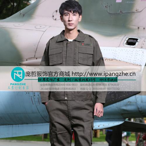 庞哲军旅纯棉工作服套装男户外运动工作服长袖工装制服