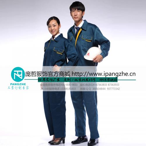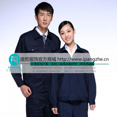 庞哲宝蓝色工装长袖春秋款时尚工作服套装男士工作制服工程劳保服