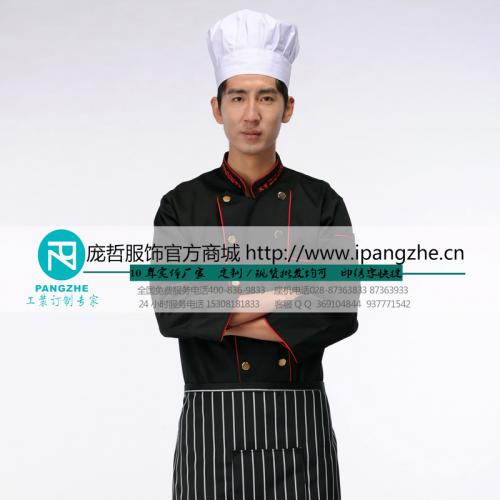 庞哲长袖厨师服 酒店饭店餐饮工作服 后厨工服 劳保服 黑色厨师服
