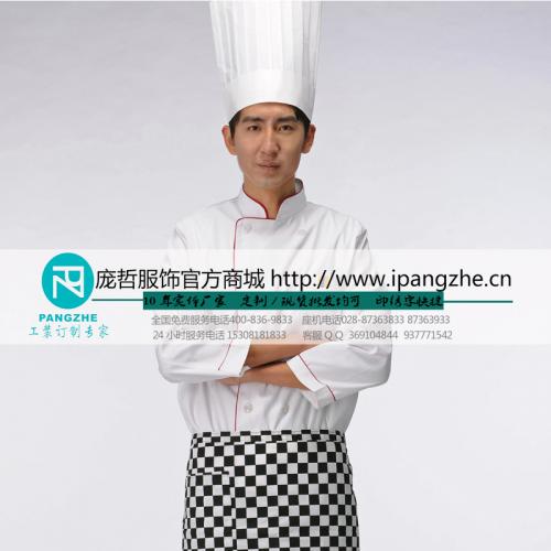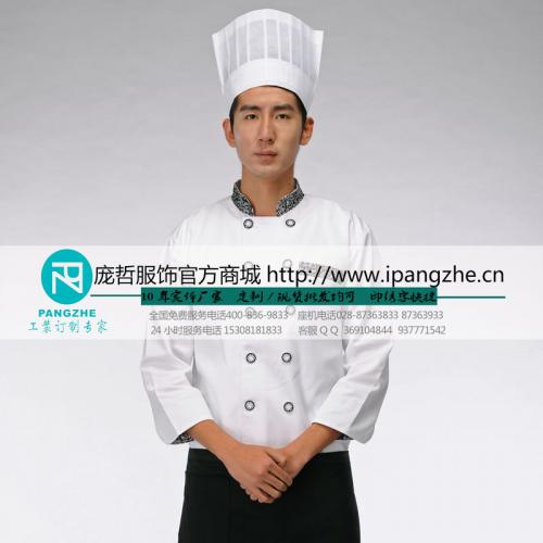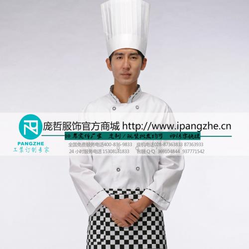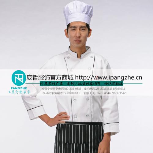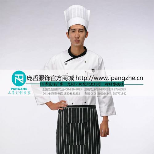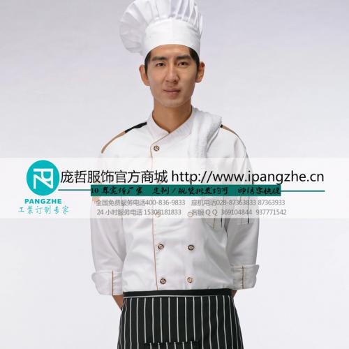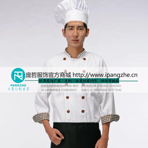 庞哲酒店餐厅厨师工作服 厨房厨师衣服 饭店食堂 长袖厨师服定做