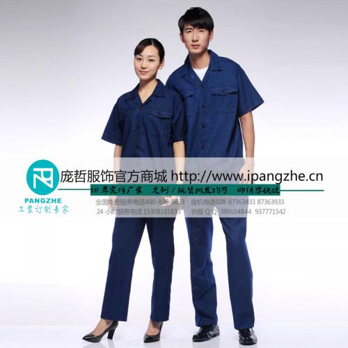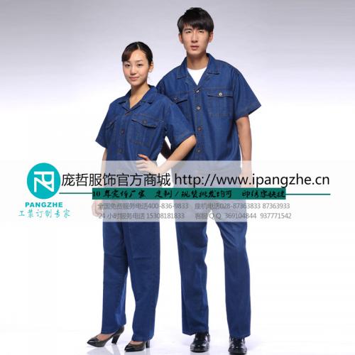 庞哲新款纯棉牛仔短袖工作服维修夏季套装工服汽修男电焊服工装