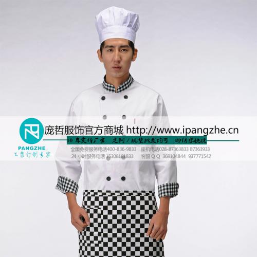 庞哲厨师工作服长袖西餐厅厨师制服春秋白色厨师服酒店大厨服促销