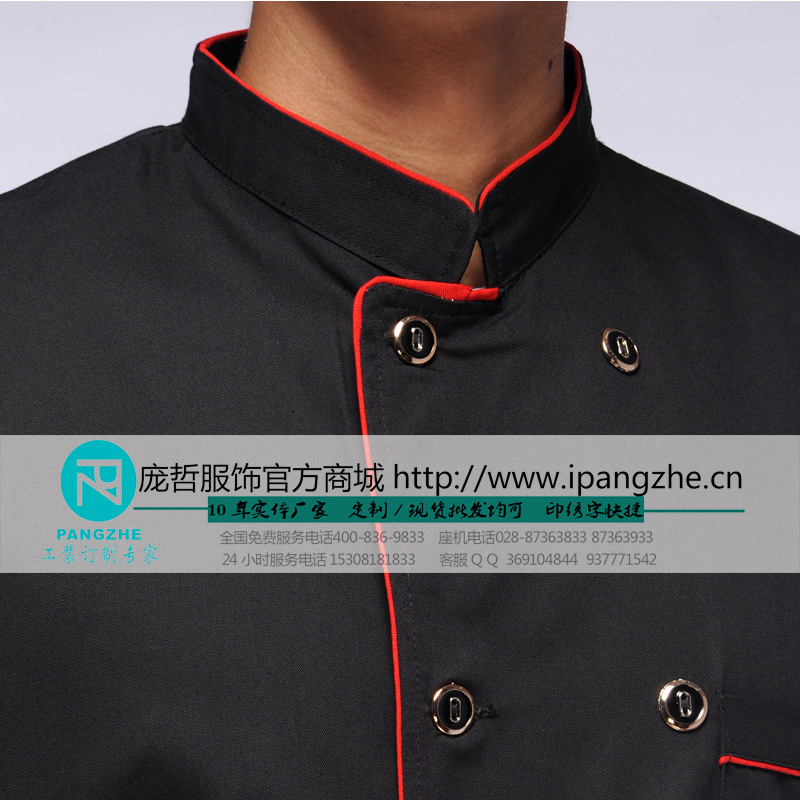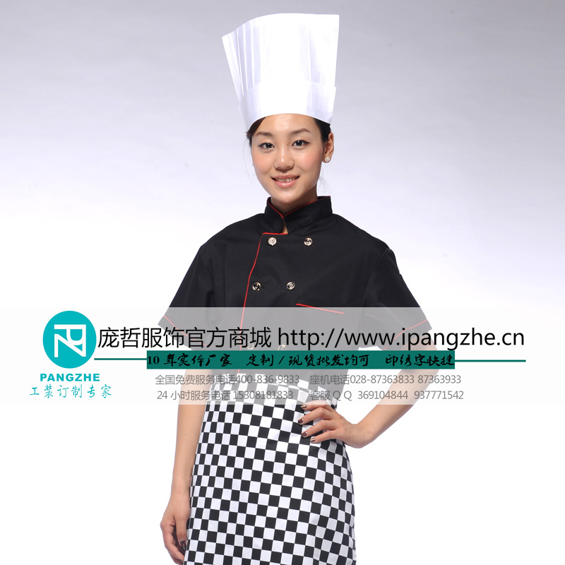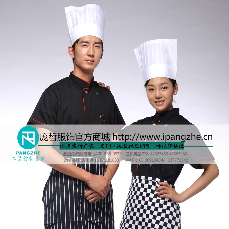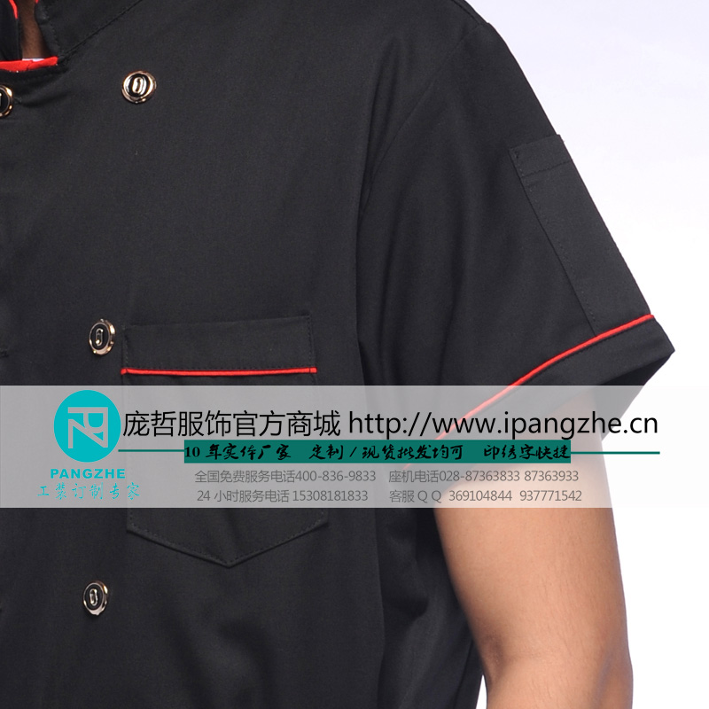 庞哲厨师服 酒店厨师服短袖夏装 餐厅厨房饭店后厨男女厨师服黑色