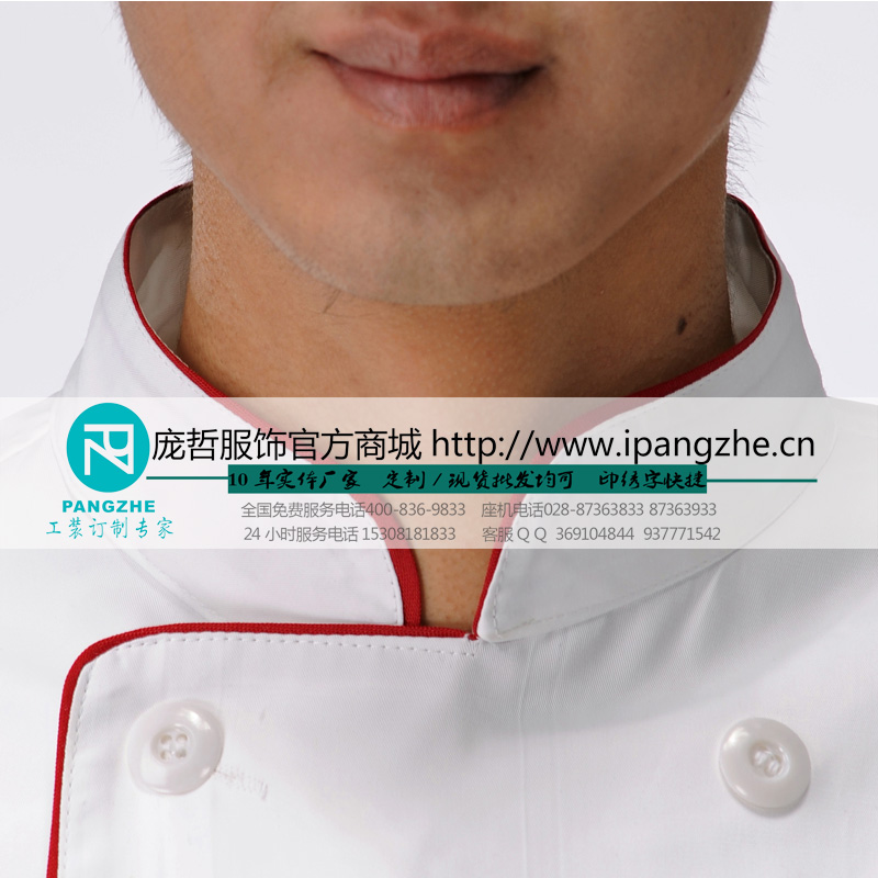 庞哲长袖厨师服 酒店饭店 厨房工作服 餐馆 餐厅 男女厨师工作服