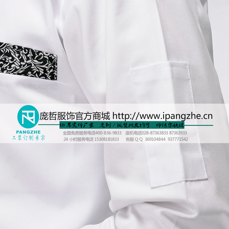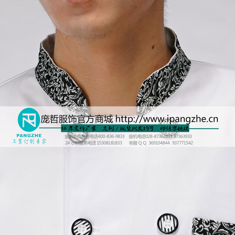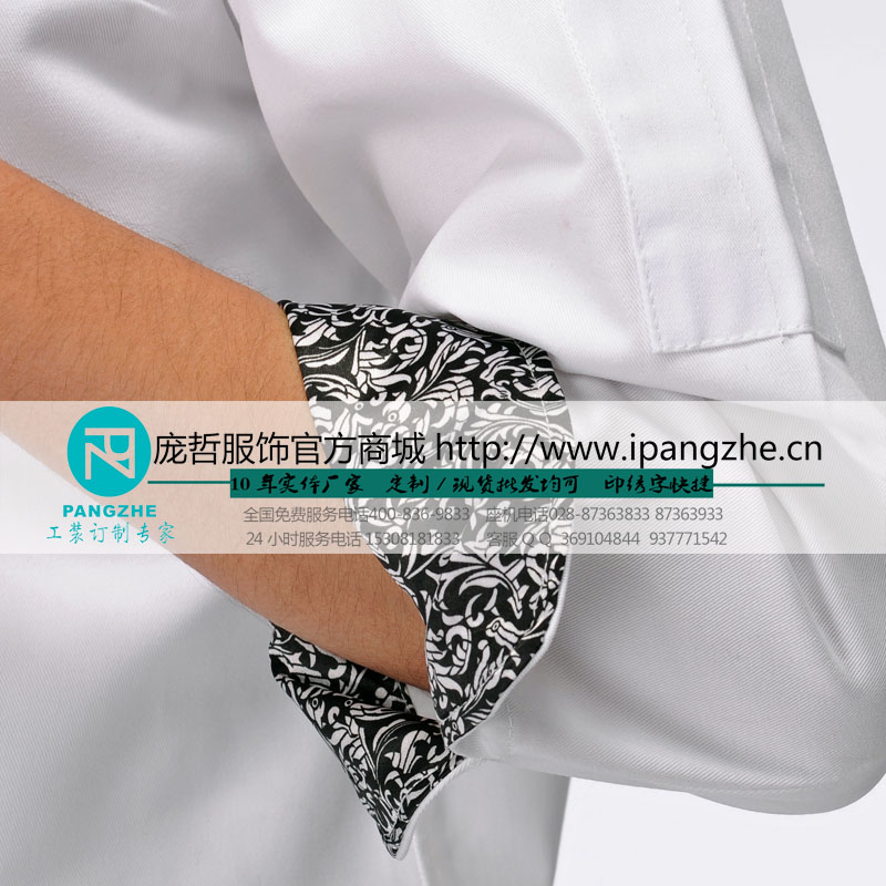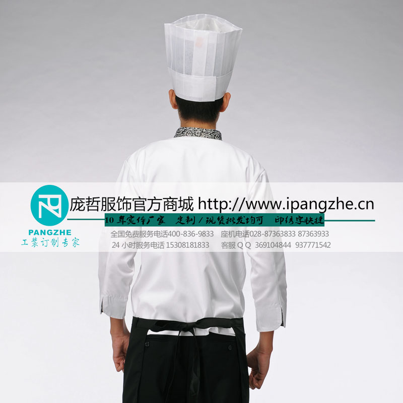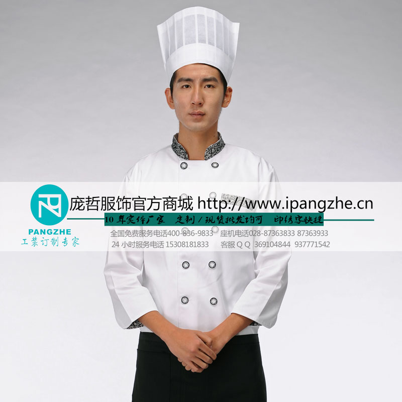 庞哲酒店餐厅厨师工作服 厨房厨师衣服 饭店食堂 长袖厨师服定做