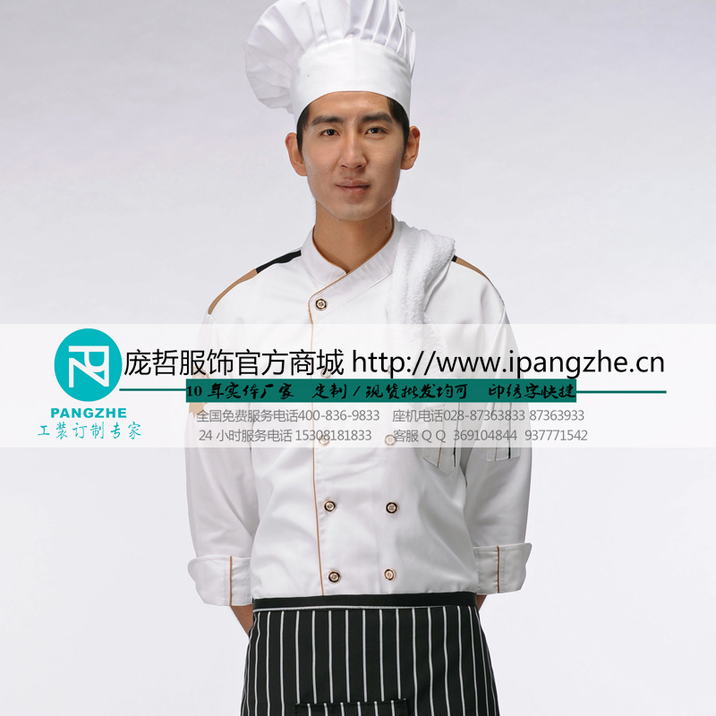庞哲春秋长袖厨师服男女 酒店宾馆餐厅厨房食堂工作服劳保工作服