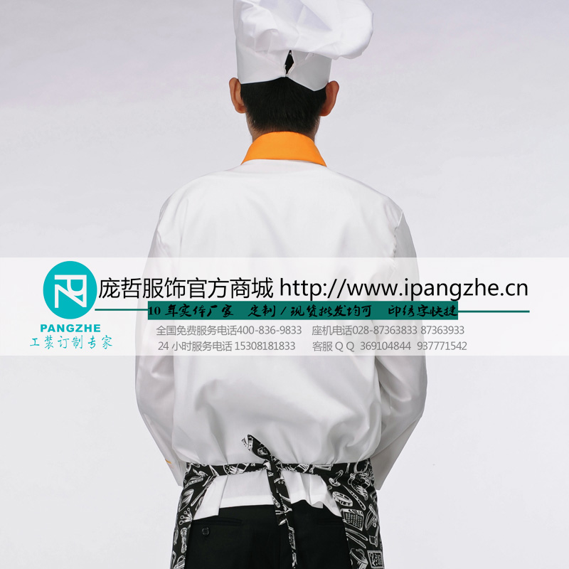 庞哲厨师服 酒店厨房 厨师长服装 餐饮饭店快餐店餐厅 长袖厨师服
