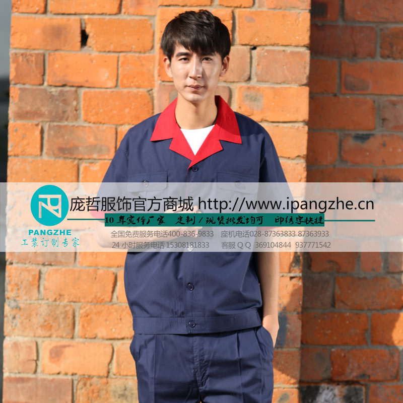 庞哲夏季短袖工作服 男 套装 工装 汽修劳保服吸汗订做工装定制