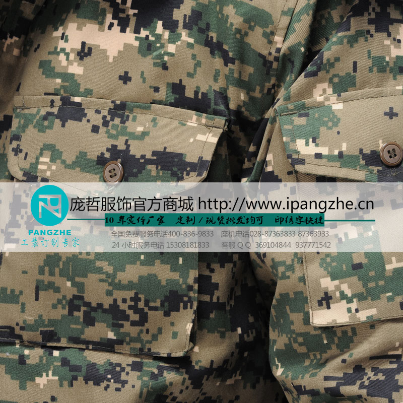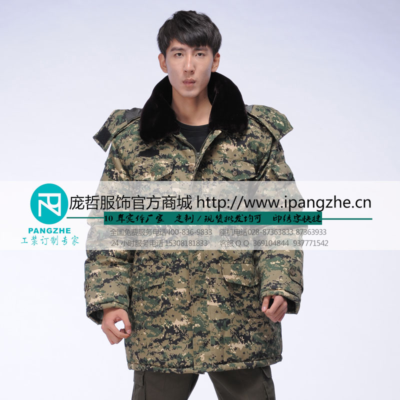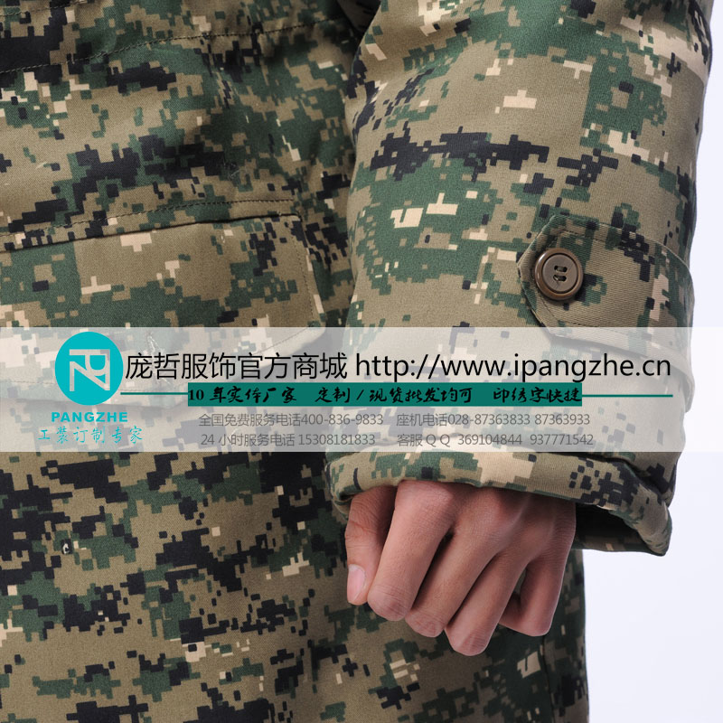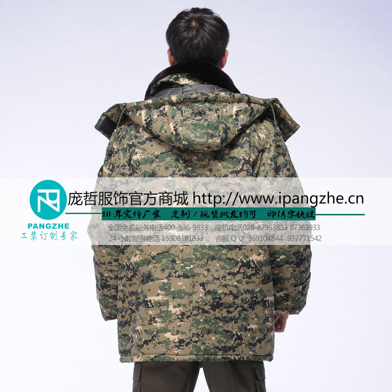 PANGZHE军旅迷彩服冬装新款军训工程服保暖棉服 迷彩防寒大衣