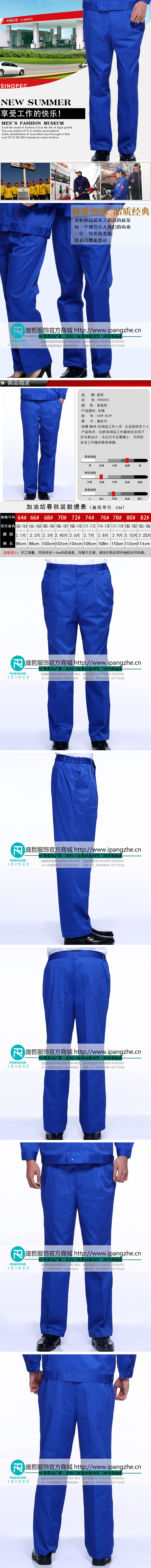 庞哲中石化工作服裤子 加油站工作裤 加油裤蓝色 防静电工裤长裤