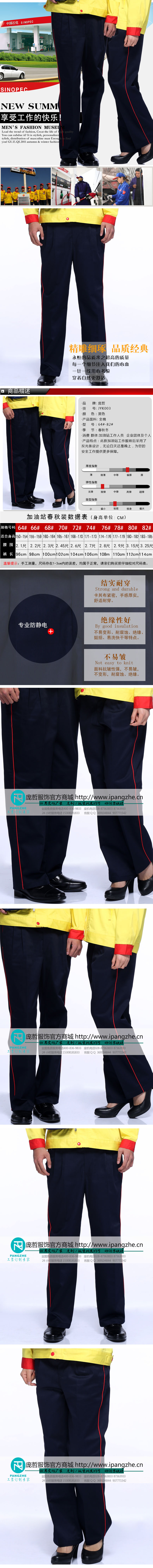 庞哲中石油工作服裤子 加油站工作服裤 防静电工装裤 加油站裤子