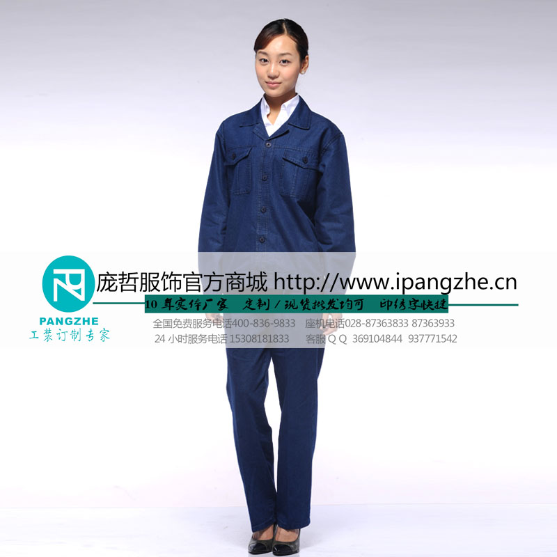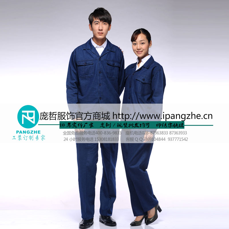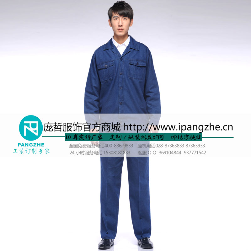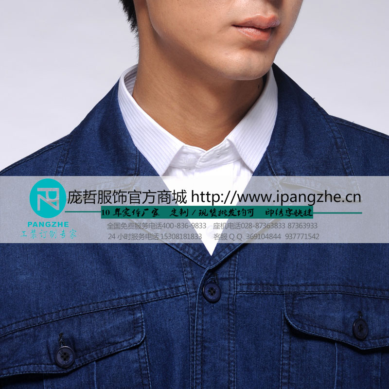 庞哲夏季纯棉薄款牛仔工作服男长袖焊工服电力劳保服电焊服套装