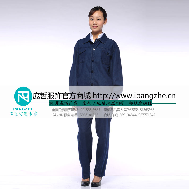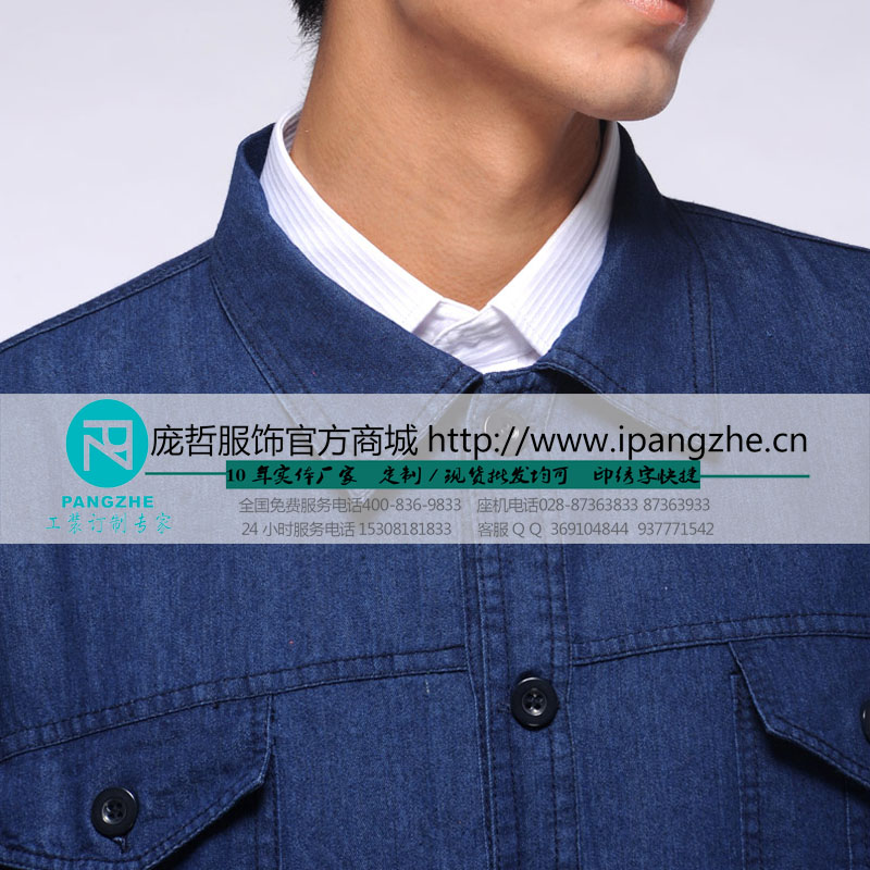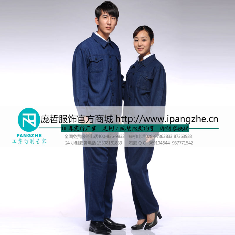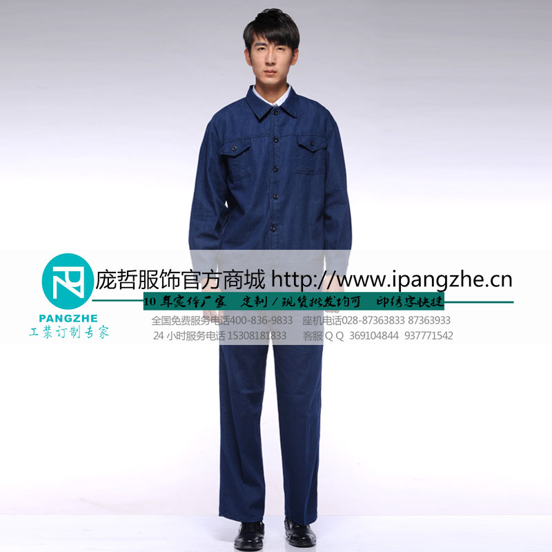 庞哲加厚牛仔工作服套装男车间厂服劳保服机械电力工程电焊服