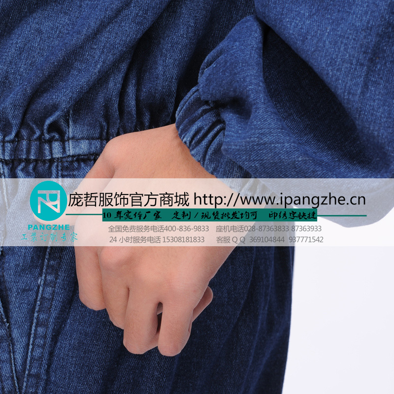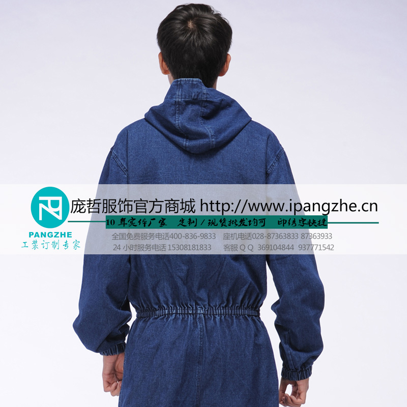 纯棉牛仔连体工作服套装男电焊服劳保服长袖汽修工装防尘服带帽