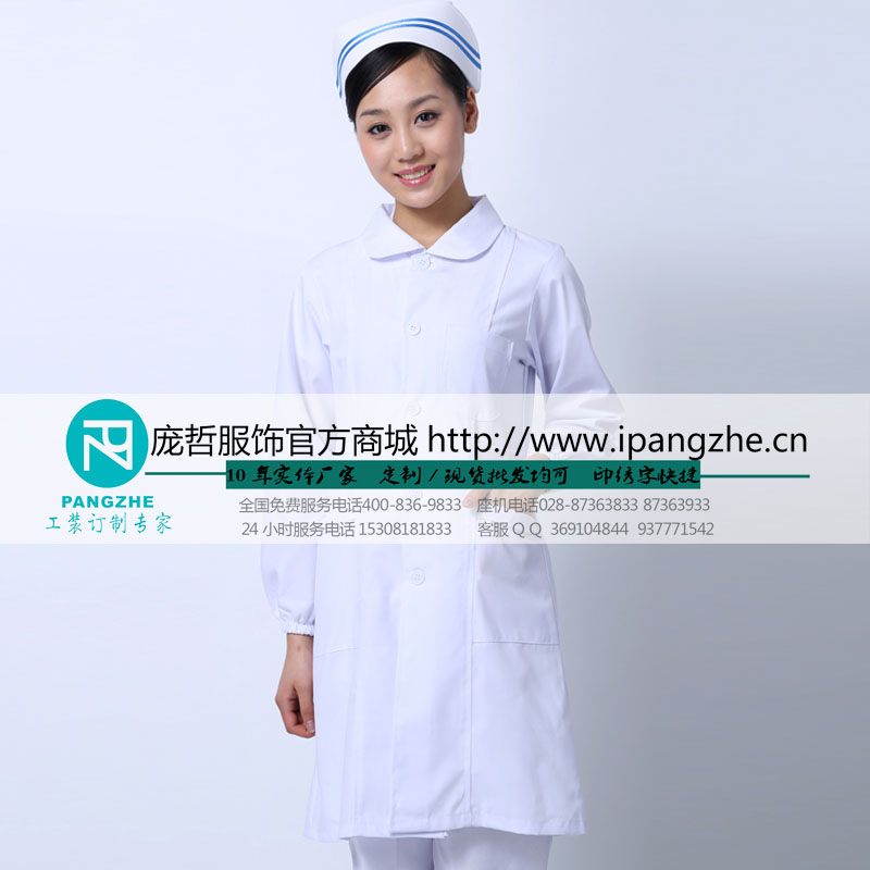 庞哲白色护士服长袖冬装长袖美容服药店服冬季护士工作服厚款套装